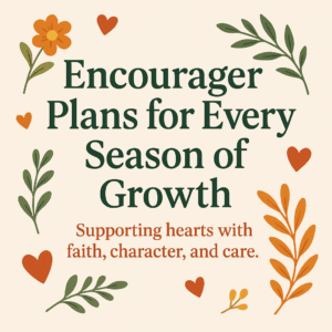 Encourager Programs for Every Stage With three heart-led paths – the Encourager Kids Plan, Teen Plan, and Parent Plan – this series helps families, schools, and communities nurture faith, big feelings, and strong character through the lens of the fruits of the Spirit.